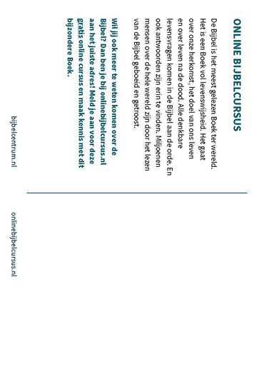 De prijs is per set van 25 stuks Deze folder is onderdeel van het Cursuspakket 'Leer de Bijbel kennen'.