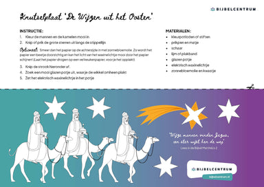 De prijs is per set van 25 stuks Deze knutselplaat kan als verwerking worden gebruikt bij het verhaal uit Mattheüs 2. Kinderen kunnen de Wijzen ink...